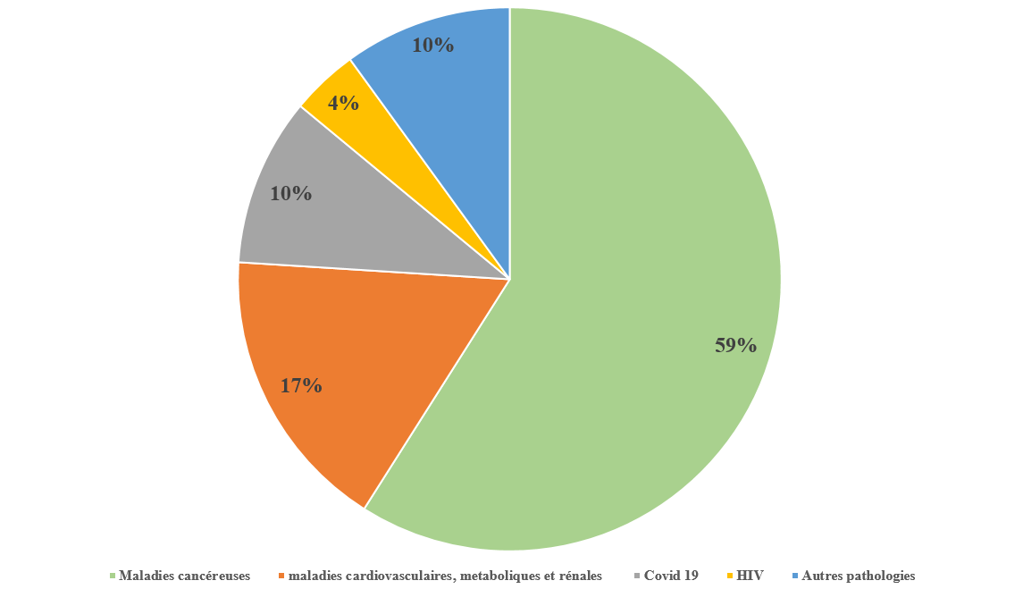 Ce diagramme circulaire fournie une vue d’ensemble statistique des publications scientifiques issues de l’utilisation de nos échantillons biologiques par domaine de recherche.